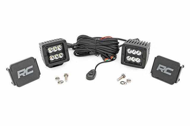 COMMAND THE DARK with Rough Country's affordable set of Black-Series 2-inch Square Cree LED Lights. This all-inclusive kit features everything you need to get going while the compact size makes it perfect for adorning a bumper, hood, roof, or anywhere you can imagine. The black panel design offers jaw-dropping good looks that blend perfectly with any vehicle using black accents like grilles, wheels, bull bars or steps! See the trails at any time of night with 36 watts and 2880 lumens of LED Lighting power. These all-weather lights feature a durable, die-cast aluminum housing and include a premium flat-wound, braided wiring harness with toggle switch and in-line fuse along with a pre-assembled low-profile mounting bracket! Includes Rough Country's 3-year Warranty.