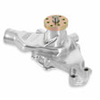 Weiand''s light weight, performance aluminum mechanical Action-Plus water pumps give a weight saving of 30% to 50% over stock cast-iron pumps. These pumps have been completely redesigned for better performance and utilize our exclusive "twisted snout" look and feature a premium quality bearing and seal that have twice the load capacity of stock pumps. Weiand''s exclusive housing counterbore keeps the bearing form "walking" out. All pumps are designed with the necessary bracket bosses and water connections to fit popular street applications.