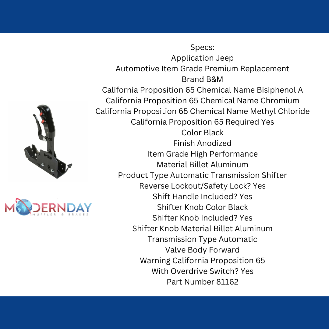 B&M Automatic Shifter for 12-18 Jeep Wrangler JK Magnum Grip Pro Stick Console 81162