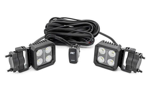 Superior Lighting Solution. Rough Country's 2-Inch Square LED Lights are a great way to add style and safety to your ride. Loaded with 5-Watt Cree LEDs and amber DRL functionality for great looks and performance. This unique light pair utilizes swivel mounts, allowing you to rotate each light 360?? giving you the control to direct the light where you need it most. So whether on the trails or outdoors, these lights are sure to provide lighting when you need it the most.Rugged Construction. Rough Country's 2-Inch Square LED Lights are perfect for those who love to venture off the beaten path. With lights producing 3600 lumens and 40 watts of power, they provide plenty of illumination for nighttime treks and other outdoor activities. Their IP67 waterproof rating means that they're great for rainy weather and mud runs, so you can rest assured knowing your lights will last as long as you do out on the trail.Installation and Warranty. Our die-cast aluminum housing has been constructed with durability in mind, standing up to even the most demanding trails. Installation is easy - bolt-on, and you're ready to go! And if you still need convincing, our Limited Lifetime Warranty gives you peace of mind to explore any terrain. So what are you waiting for? Command the dark with Rough Country's 2-Inch Square LED Lights!