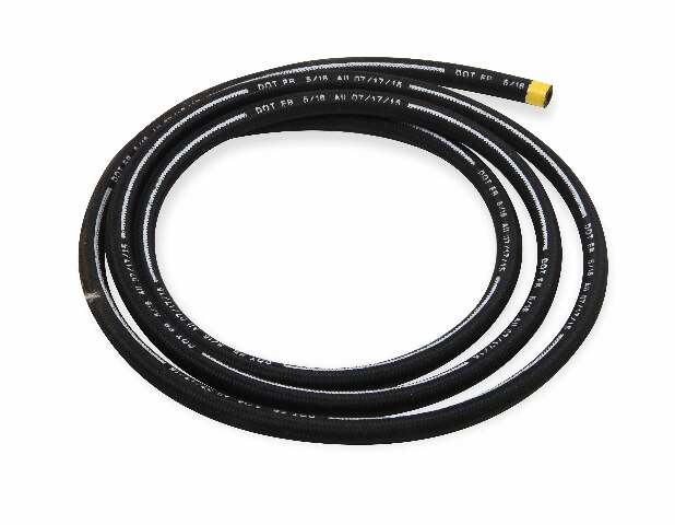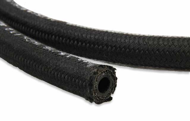 A TRIPLE STEEL AND FABRIC braid-reinforced high pressure hose developed specifically to meet the demands of power steering systems, this flexible hose is also suitable for hydraulic and air lines. Available in size - 6 with a fabric outer covering. The pressure rating shown is only valid when Earl's power steering hose is used with Earl's POWER STEERING hose ends. The use of other manufacturer's hose ends is not recommended.