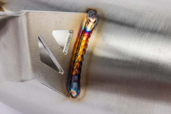 - Single 3" (76mm) to dual 2.5" (63.5mm) mandrel-bent brushed tubing