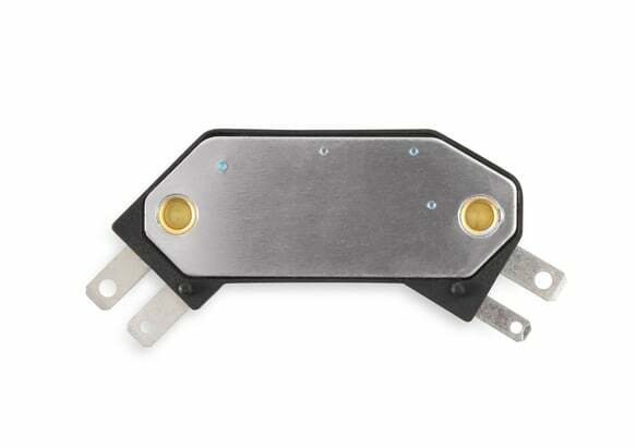 This high performance HEI module provides your plugs with more spark over the stock module. The solid state electronics provide high coil out put and superior reliability. The Dwell control circuit ensures, long consistent coil charging. The current control circuit protects against coil over heating. This module fits most GM HEI for V8 engines with the 4 pin module 1974 thru 1985