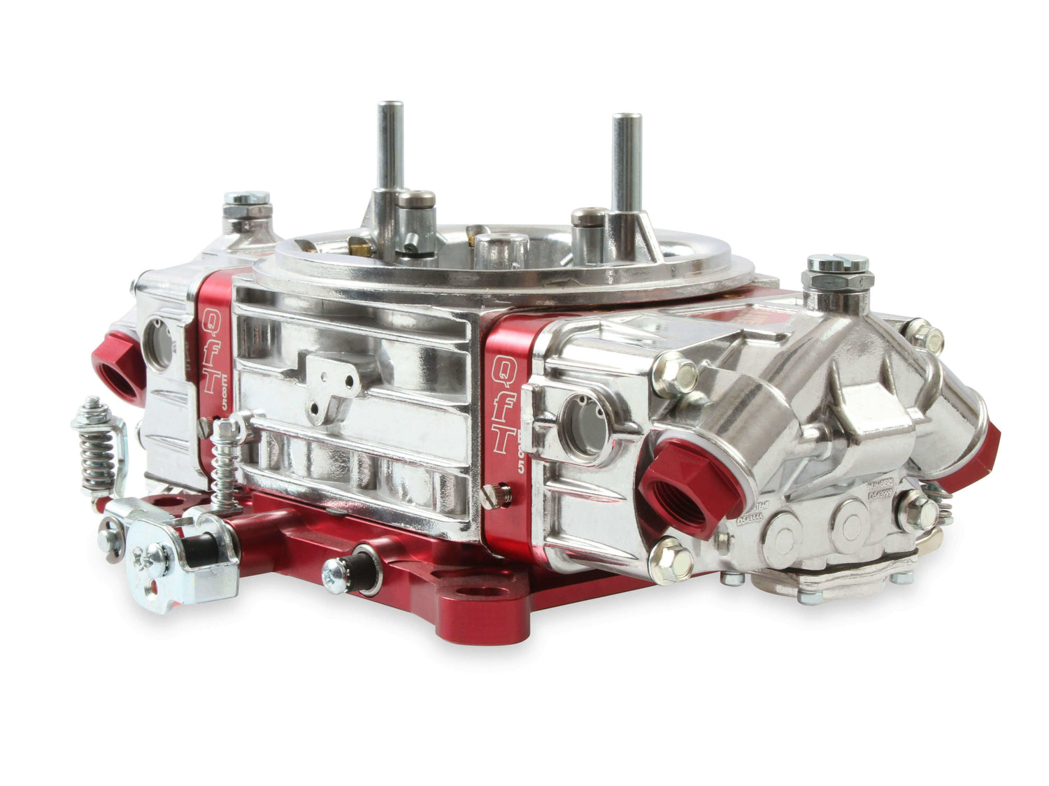 Ideally suited for bracket racers and weekend warriors alike, Q-Series carburetors are purpose-built for the dragstrip. To combat the g's experienced during hard launches, Q-Series carbs are equipped with notched floats and secondary jet extensions. The high-flow aluminum main body isn't just lightweight, but it also features recessed air bleed cavities for improved air flow. Die-cast venturi are machined to exacting tolerances for outstanding throttle response. Billet metering blocks ensure a uniform fuel curve, while throttle-bodies enhance durability. For those days when track conditions vary from one pass to the next, QFT's QuickLink system makes adjusting the secondaries easy on models equipped with mechanical secondaries. The Q-Series is our most comprehensive line of carburetors, with applications available for use with gasoline, methanol, and E85 fuels, forced induction, drag race, circle track, and comes in both vacuum and mechanical secondary models. Lightweight aluminum main body Vacuum and mechanical secondary models available Aluminum fuel bowls with dual sight glass windows Billet metering blocks with 4-corner idle system Changeable idle feed and power valve channel restrictions Billet aluminum throttle body provides exceptional precision and strength PTFE coated and sealed shafts